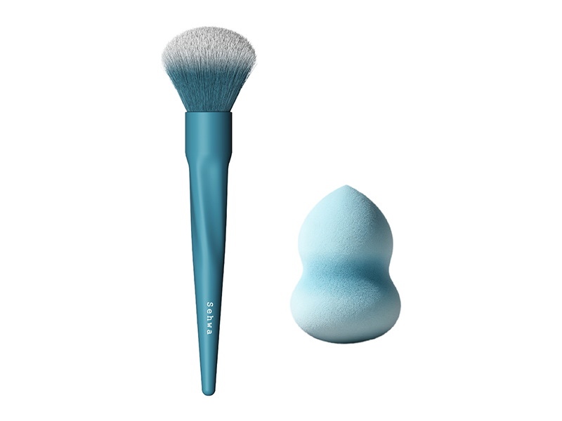 Including both makeup brushes and beauty sponges, the entire collection features a clean and refined style. The products are designed to cover multiple steps of a makeup routine, such as foundation, setting, and eye makeup.